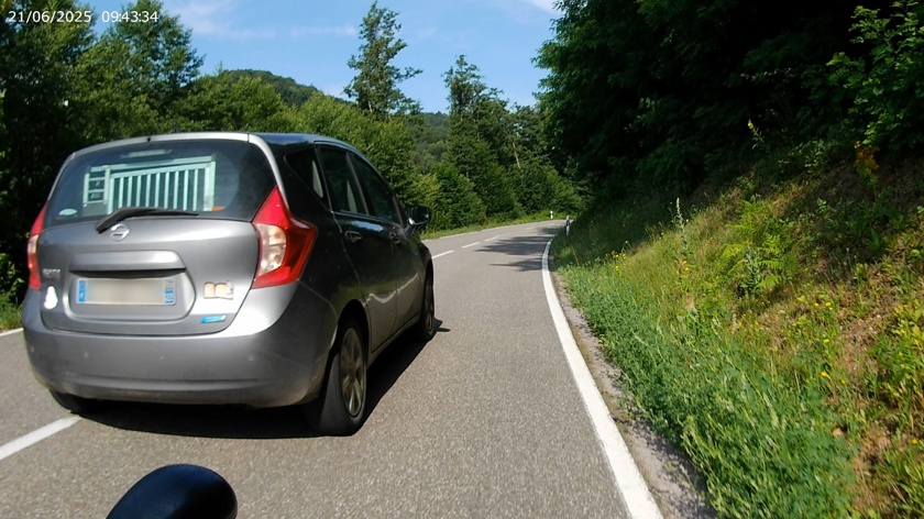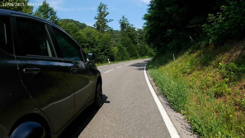 Ich befuhr am 21.06.2025 gegen 9:43 Uhr mit dem Rennrad die L 478 von Schönau kommend in Richtung Fischbach. Hinter mir fuhr ein Trainingskollege. In der langgezogenen Rechtskurve am Rumbergskopf überholte uns der o. g. dunkelgraue Pkw mit hoher Geschwindigkeit und einem sehr geringen Abstand. Bei mir dürften es etwa 30 cm Abstand gewesen sein, bei meinem Trainingskollegen nach eigener Aussage eher noch weniger.