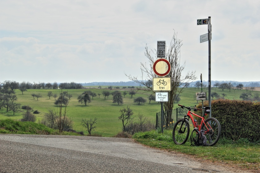 An diesem Tag hatte ich übrigens auch die wegen der beginnenden Corona-Massenhysterie verbarrikadierte Grenze nach Frankreich dokumentiert. Dieser ziemlich steile Wirtschaftsweg führt runter ins Tal der Trualbe, wo der sogenannte „Rückenwind-Radweg“ verläuft. Diese Route kann man (zumindest laut der bis heute überdauert habenden Beschilderung) berghoch auch weiterhin nur „auf eigene Gefahr“ benutzen.