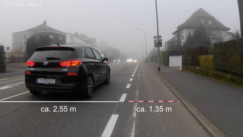 Was ist also nun mein Hauptproblem mit diesem neuen „Schutzstreifen“? Schauen wir uns zur Verdeutlichung meiner Kritik einfach mal den folgenden Screenshot meiner Lenker-Kamera an.