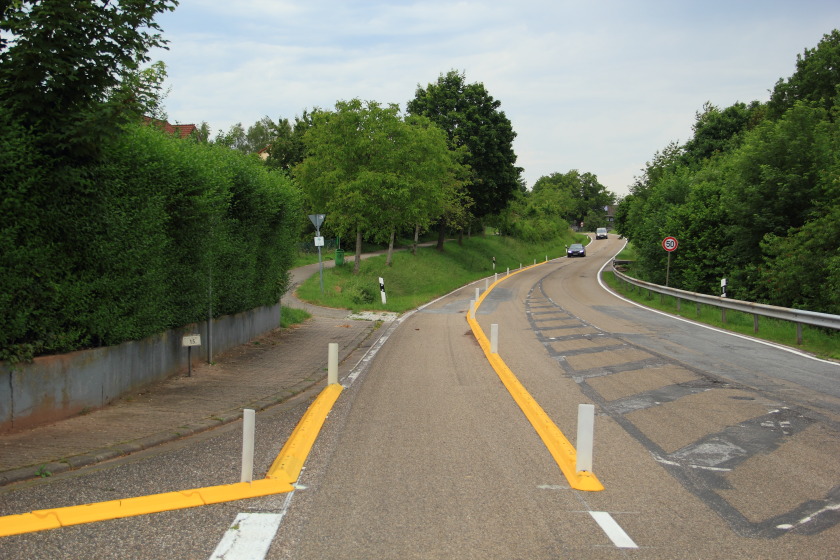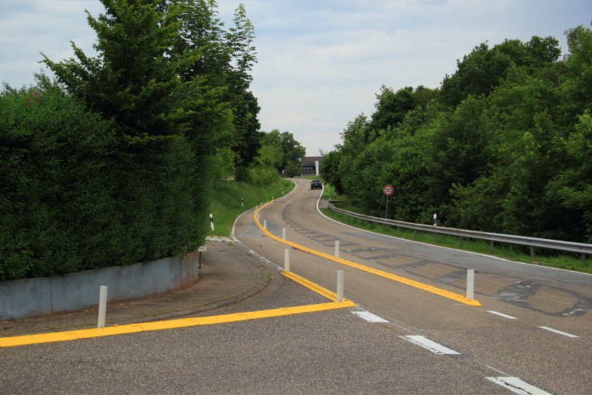 Wenn da einer von links kommend das Hügelchen mit ordentlich Karacho runterrauscht, kann es mangels der Sichtbeziehungen durchaus relativ eng werden. Aber er muss ja dann auch Vorfahrt gewähren. Oder nicht?