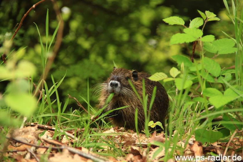 Nachdem ich am 15. Juni die Leimener und Hauensteiner Radwegelchen dokumentiert hatte, legte ich noch einen kurzen Stop im Waschtal ein. Dabei fiel mir auf, dass die dort residierende Nutria-Familie Nachwuchs bekommen hatte, denn es wuselten einige kleine Jungtiere am Ufer herum – und da ich die Kamera mit dabei hatte, machte ich noch schnell ein paar Schnappschüsse. Ich schrieb der von Tierfotografie begeisterten Pixelartistin eine e-mail, ob Sie denn nicht auch mal Lust auf diese pussierlichen Tierchen hätte…!?